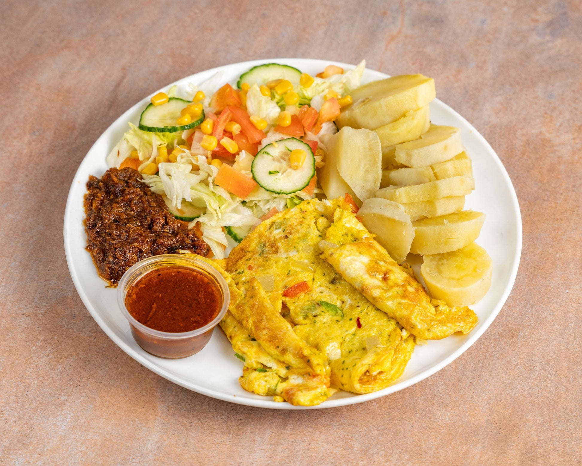Oeuf + Patate Douce + Plantain Bouillie + Salade + Avocat + Chiktay Hareng